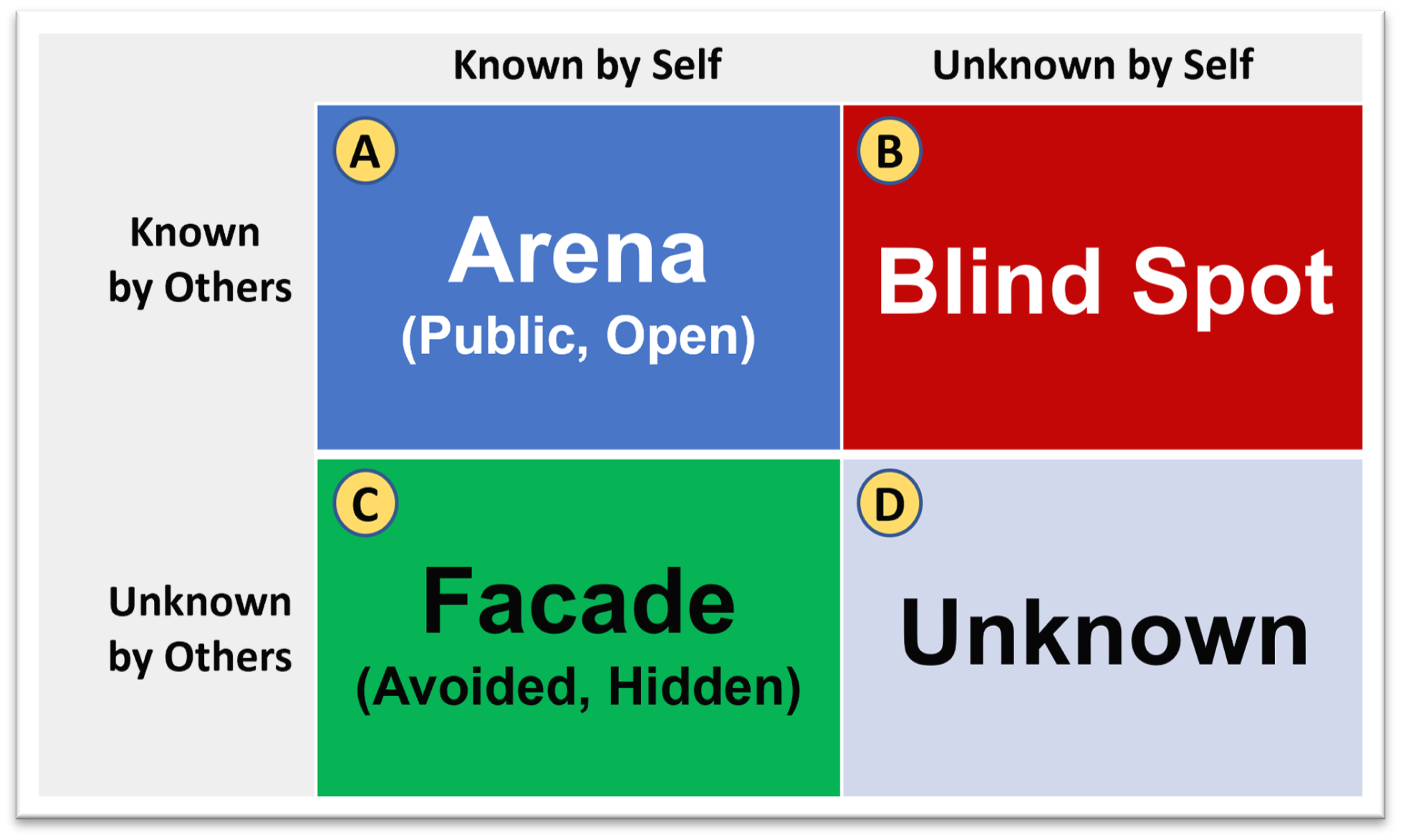 Area A comprises the part of common knowledge, those aspects of our behavior that are known to ourselves and other members of the group. Here, we are more or less the 'public person'.